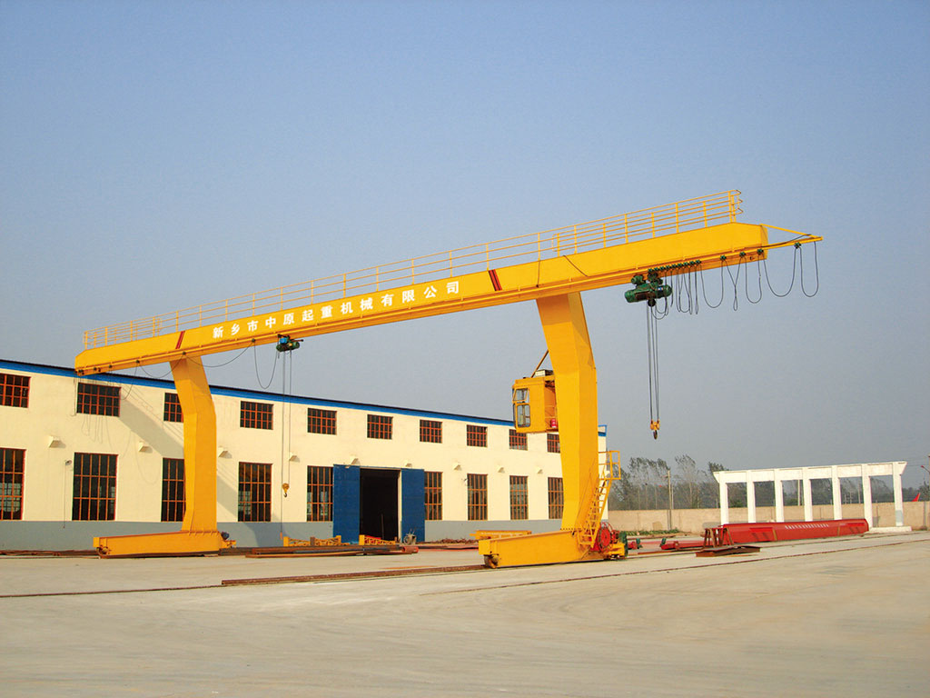 它的金屬結(jié)構(gòu)像門(mén)形框架,承載主梁下安裝兩條支腳,可以直接在地面的軌道上行走,主梁兩端可以具有外伸懸臂梁。